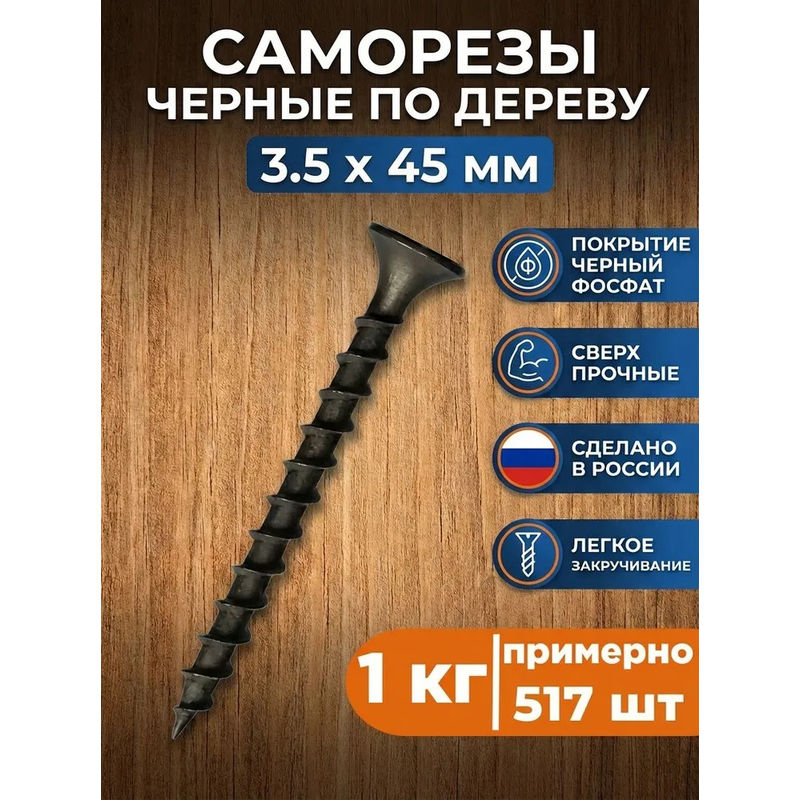 На ТК "Колхозном Дворе" вы можете купить саморезы по дереву черные 3,5х45 мм (1 кг) по цене 219 руб. Вы можете оформить доставку или приехать к нам с 8:00 до 18:00 и забрать товар самостоятельно. Уточняйте актуальную цену и наличие у наших арендаторов. Выгодных вам покупок.